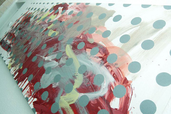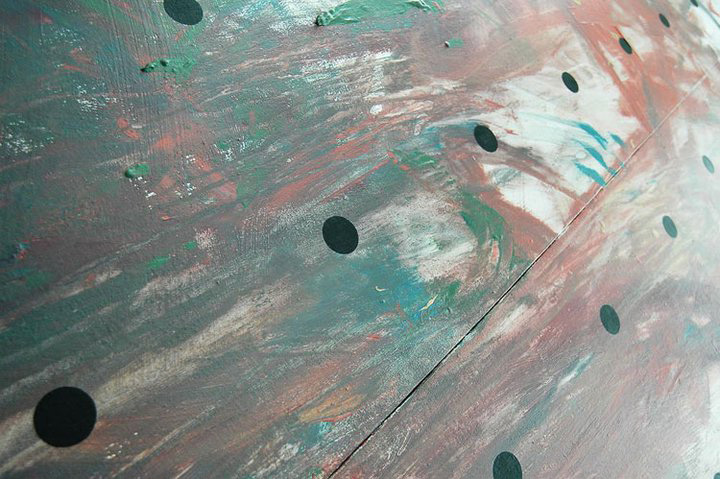 В своєму проекті Face No More я вирішив закрити очі, щоб не бачити того, що я малюю. Ні, неправда, я ж потім все одно відкриваю і все добре бачу. Я закрив очі мабуть тому, щоб просто збільшити кількість випадкового в цих роботах, в надії на те, що коли зніму пов'язку побачу щось нове, щось неочiкуване. Я хотів збільшити присутність випадкового, або краще сказати підсвідомого. Але моск виявився настільки суворим і сильний жандармом, що навчився "бачити руками". Якщо на початку проекту я ще був справді здивований деякими композиціїними рішеннями, то в останніх роботах я вже практично знав Що вийде. А може правда полягає в тому, що мені просто набридло чути фразу, "та я і сам так намалюю", "та так і дитина намалює", "так любий зможе". Та да, да, я взагалі не бачив що малював. А кольори, які стоять переді мною в банках вимішувала Настя. У мене досить примітивне уявлення про кольорові поєднання, тому я повністю довірився їй.