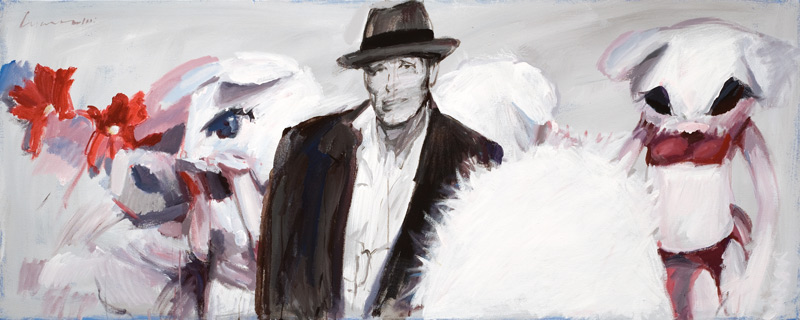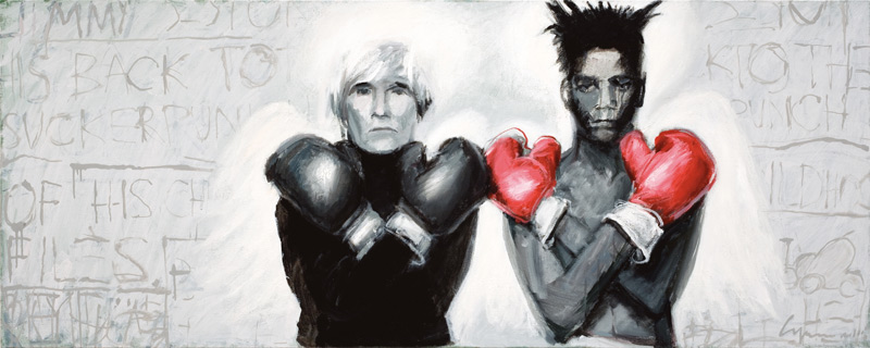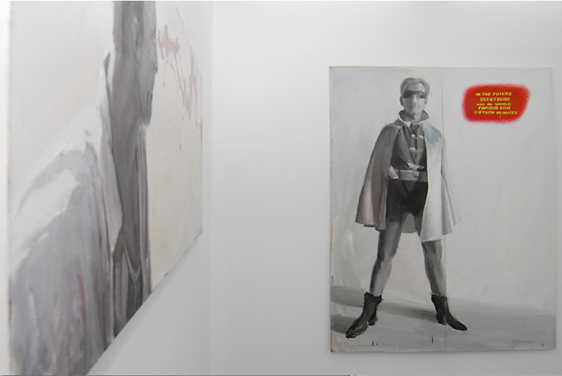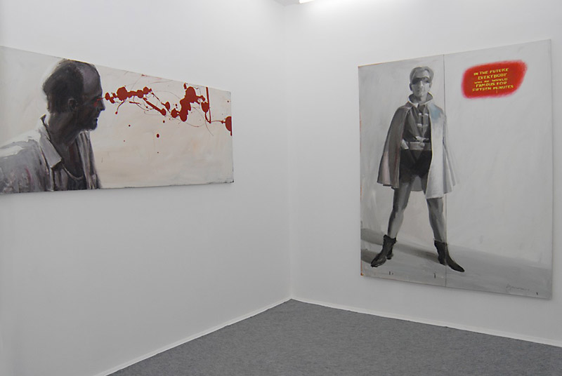 Львовский художник Олег Сусленко – неплохой стилизатор. Что показал его предыдущий проект «Washing maсhine» — артистичная, «пустотелая» абстрактная живопись N-нного поколения. В отличие от классической модернистской абстракции, это красивая картинка и не более, симулякр в чистом своем виде, не отягощенный никакими метафизическими построениями… Сейчас же Сусленко наконец-то открыл обойму козырей в рукаве – своих заочных учителей. Он вообразил себя «In paradise», сравнивая с репортером, попавшим в рай. Там его кумиры получили то, чего им не хватало в жизни земной. Бойс, как святой Франциск, пребывает в экологически уравновешенном раю, беседуя с братьями нашими меньшими. Баския встретил Уорхола и уже с ним не расстается. Де Кунинг обрел Христа – такого брутального и человечного, каким он его и «прозревал». Полок пишет собственной кровью, выплескивая ее на холст прямо из глаз. Фрида Кало больше не чувствует боли, а Уорхол растянул «пятнадцать минут славы, на которые вправе претендовать каждый» на целую вечность…