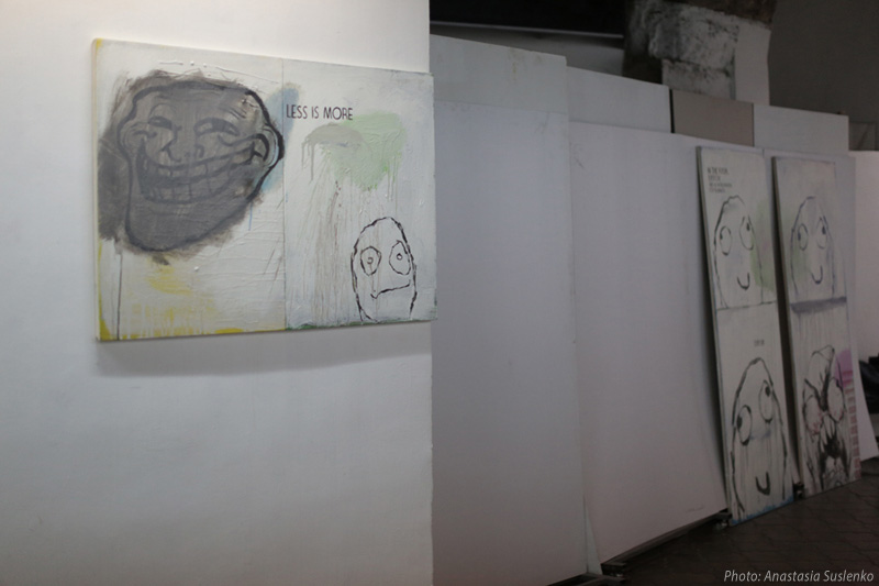 В серії робіт «Трололо» я експлуатую старі перевірені постмодерністські прийоми, незважаючи на те, що до нас постійно долітають повідомлення, ніби ''Постмодернізм із дед''. В проекті "Трололо" я тролю тих хто думає, що це так. Тому що за сучасних наявних об'єктивних обставин, тролінг залишається чи не єдиною можливістю для артикуляції мистецького жесту. Тому що тіло Постмедернізму досі не знайдено. Також, на моїх полотнах повсякчас присутній образ, відомий як тролфейс. Я справедливо вважаю, що сотні різноманітних зображень тролфейсу по своїй суті та виконанню є геніальними, і створені найвеличнішим художником сучасності – самим Анонімусом. Комета "Тролфейс" пролетіла повз нас кілька років тому і далі продовжує розсипати свої метеорити. Я просто ходжу і збираю їх по землі, щоб потім тупікнути десь у виставковому просторі.
